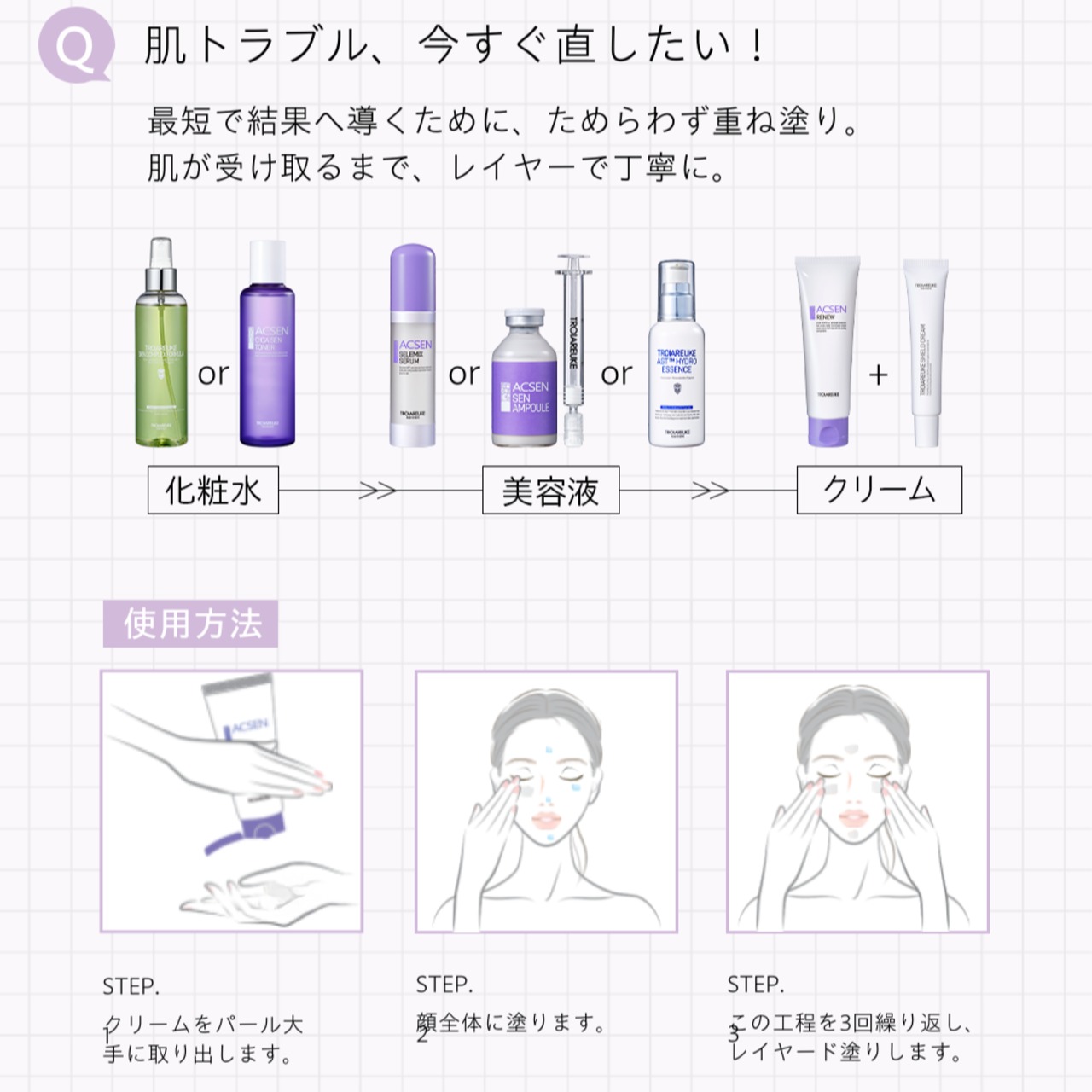 スキンケアの後、またはスキンケアの最後に、3滴取り顔全体に薄く伸ばす。